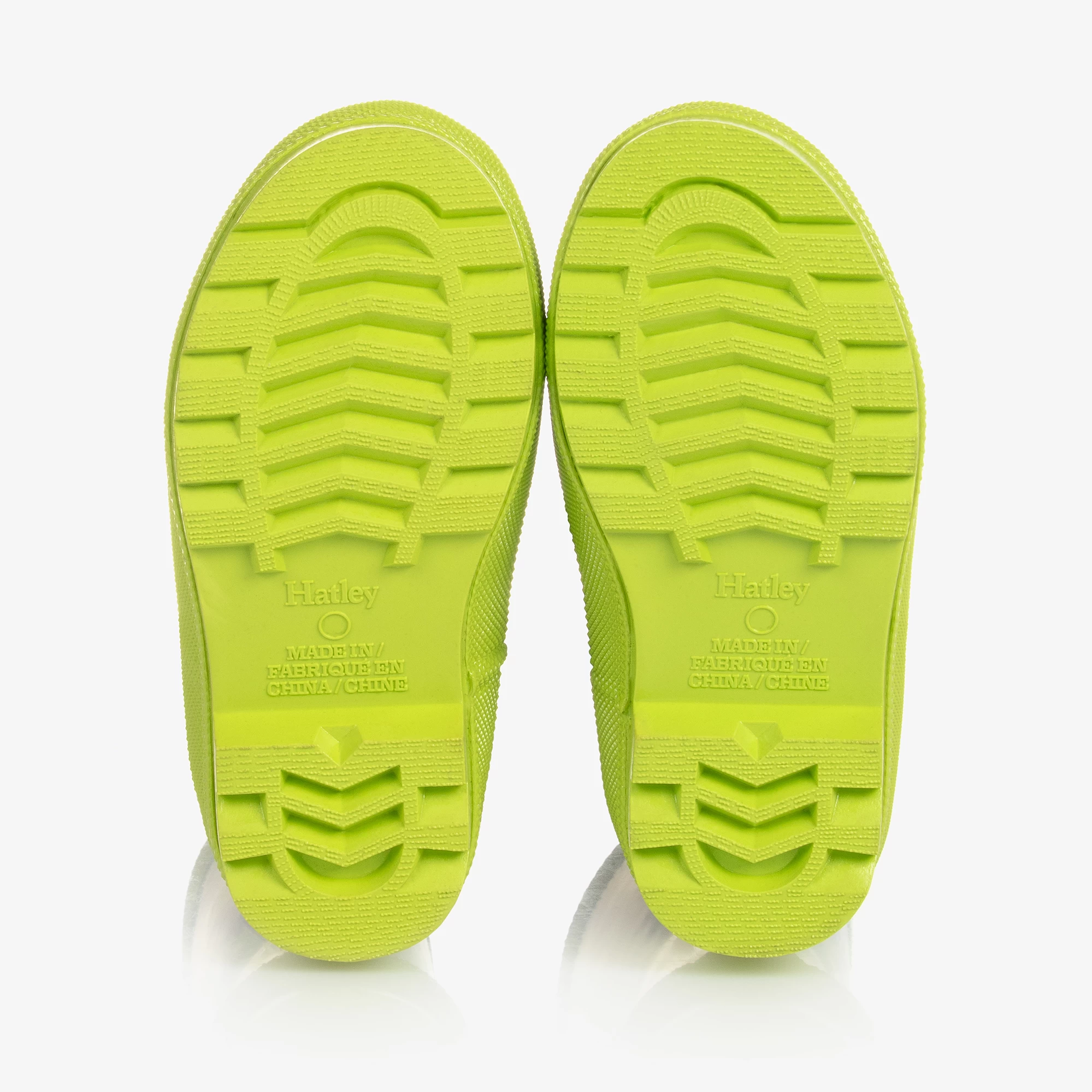 Fun blue rain boots for boys by Hatley, patterned with blue and green dinosaurs. Made from a flexible rubber, these practical boots have a reflective logo on the front for improved visibility. The back has a pull tab for an easy slip-on style, and they have soft cotton lining for comfort. The chunky rubber soles improves grip for days spent splashing in puddles. They come with a pair of matching cotton ankle socks.