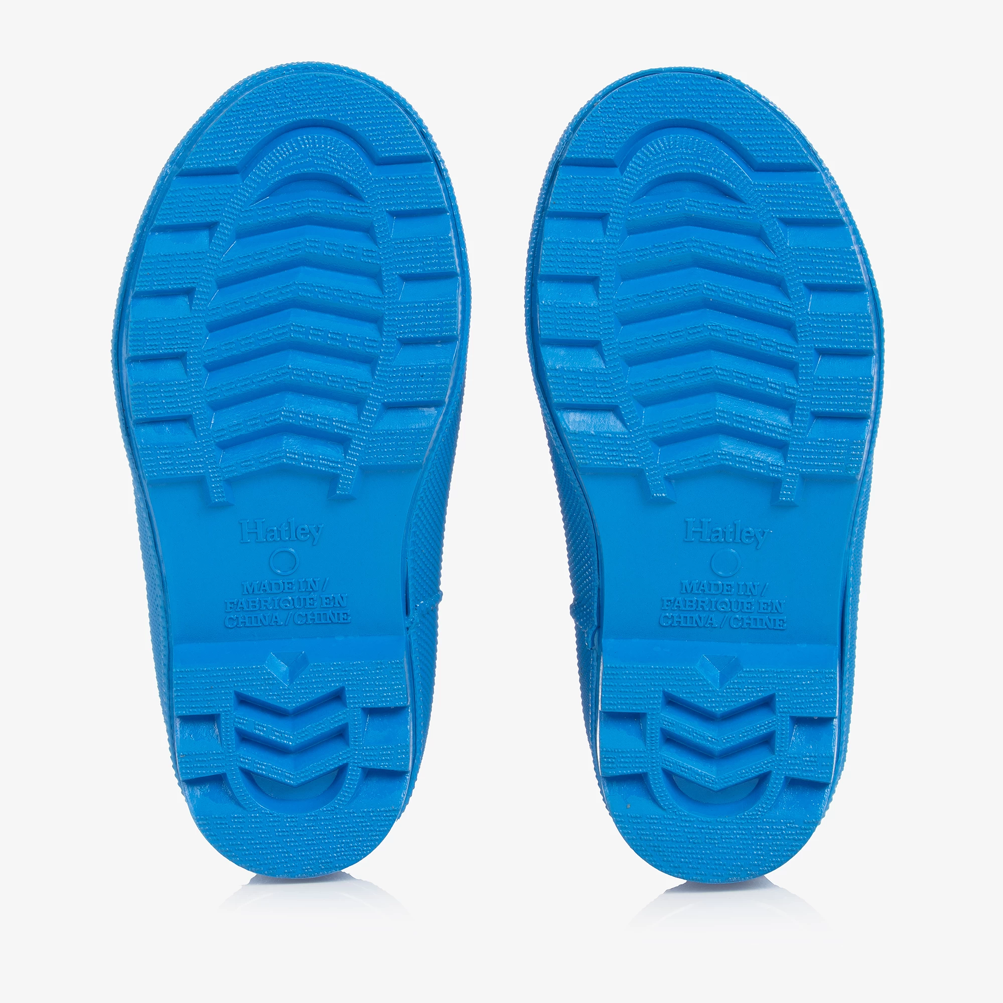 Dark grey and blue rain boots for boys by Hatley, patterned with red and green stars. Made from a flexible rubber, these practical boots have a reflective logo on the front for improved visibility. The back has a pull tab for an easy slip-on style, and they have soft cotton lining for comfort. The chunky rubber soles improves grip for days spent splashing in puddles.