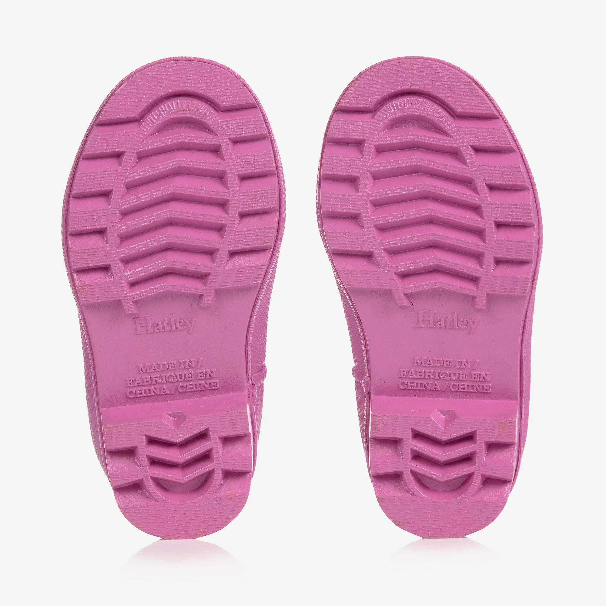 Navy blue and purple rubber rain boots for younger girls from Hatley. Patterned with a whimsical ‘Pegasus Constellations’ print, they have moulded rubber soles for a good grip, comfortable padded insoles and a silver reflective logo patch on the front. These pull-on boots are lined in soft cotton jersey with a pull tab on the back for ease when dressing.