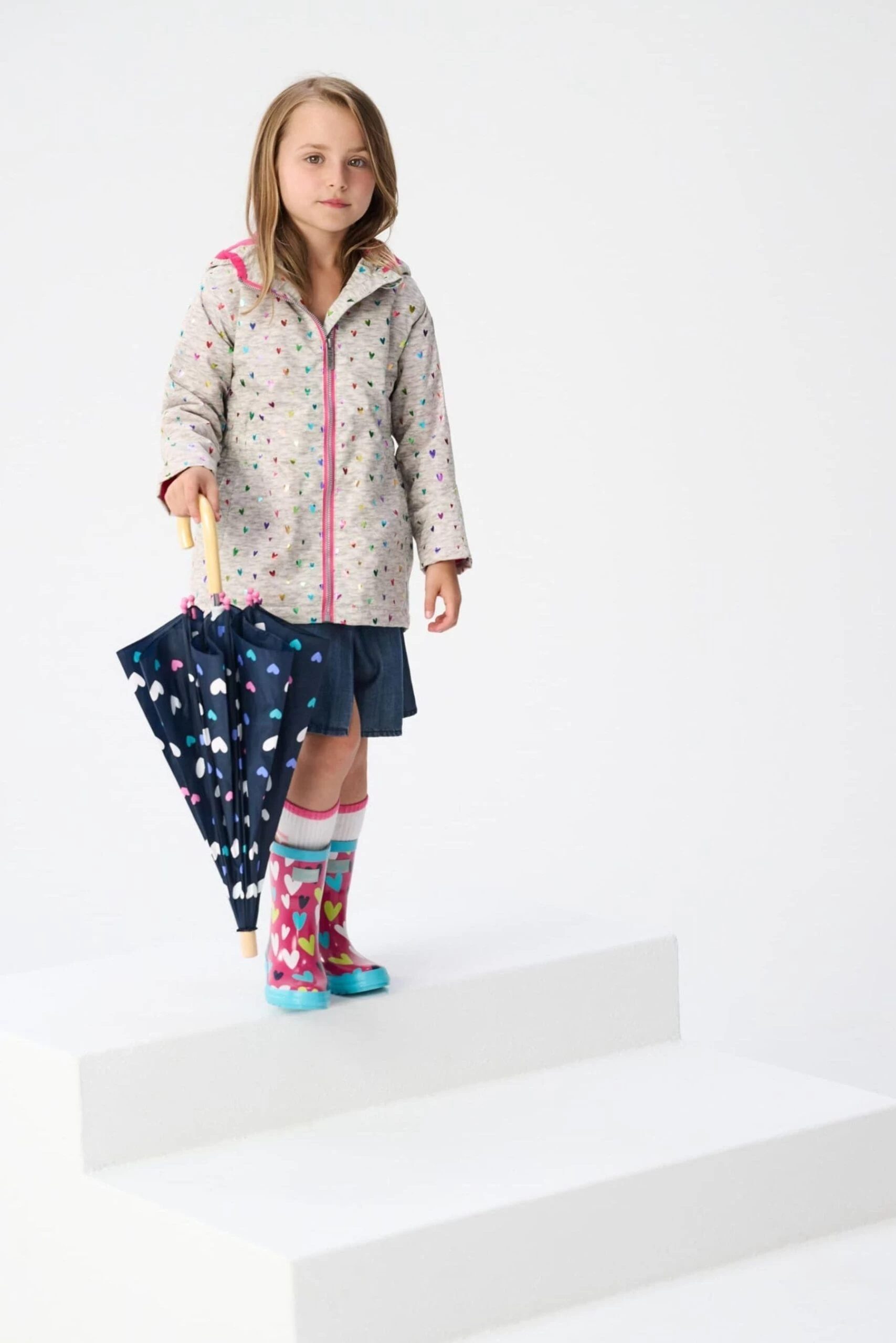 Hatley Grey Confetti Hearts Microfiber Rain Jacket