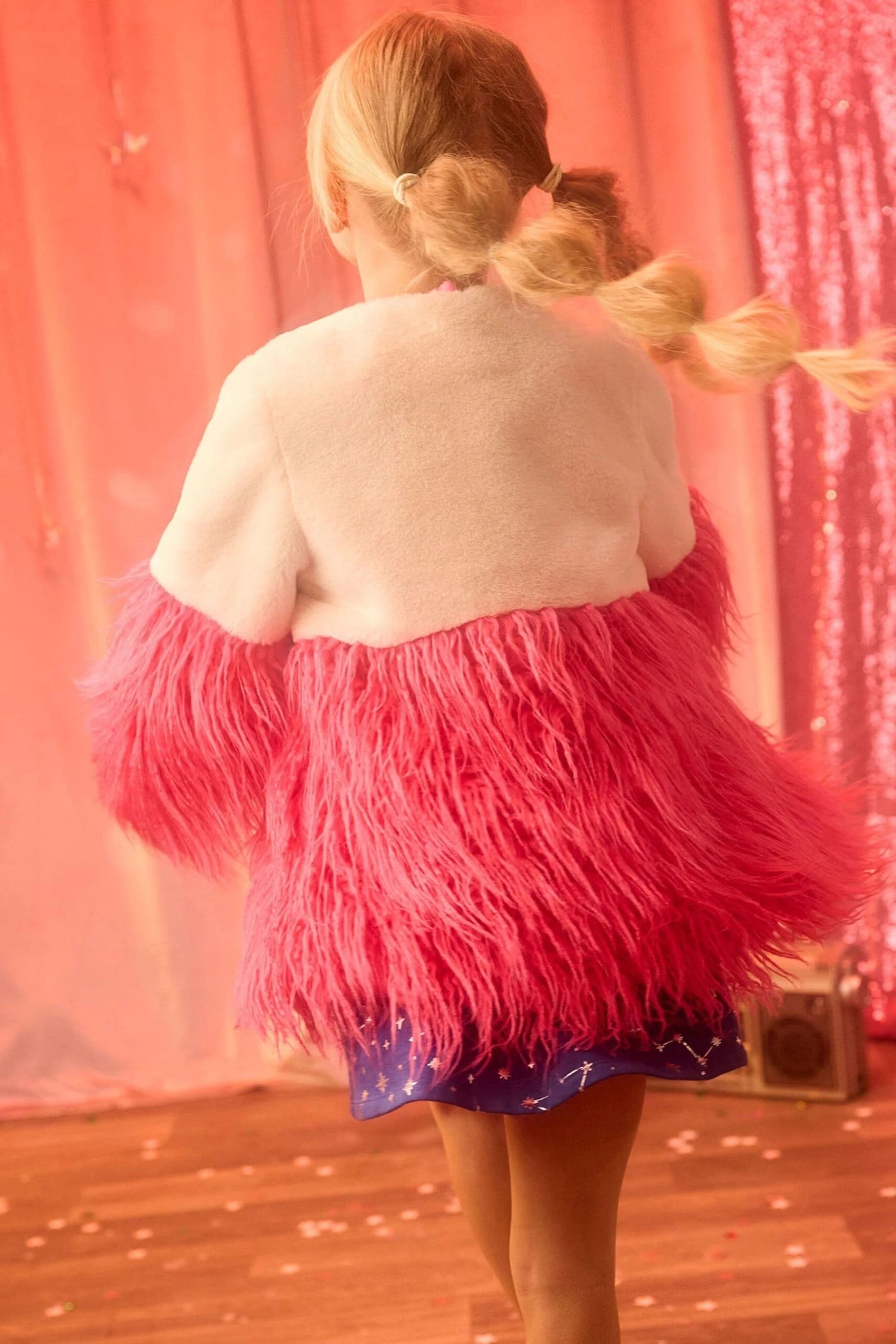 This cosy faux fur jacket is the perfect addition to your little one’s wardrobe. Featuring an exciting design and a beautiful lining, this jacket is stylish and is sure to come in handy on those cooler fall days.